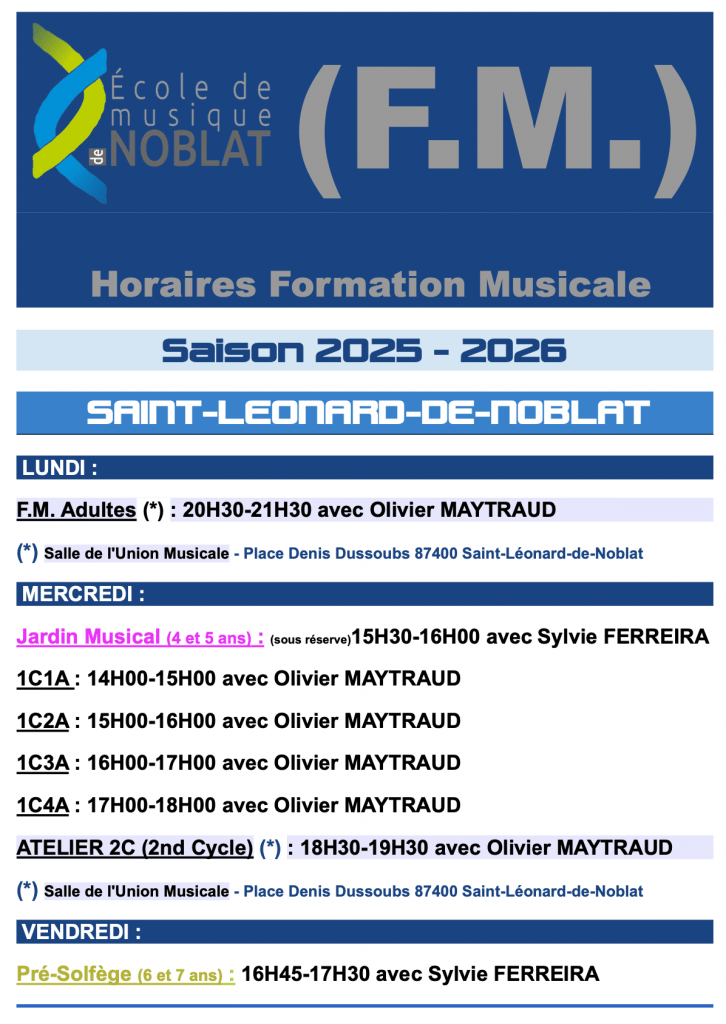 Cursus Formation Musicale (F.M. = solfège) :